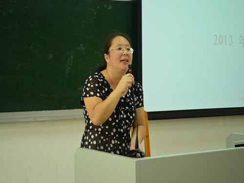 在致简单的欢迎词后,郝建萍副书记开始了本次的培训会议。首先她介绍了本次活动的分组情况,来自三个学院的学生被分成25组,每组都有一名组长负责各项工作。接着她强调了这次实习大家的岗位职责,即为展商或为机构提供翻译服务,并根据展团联系人要求完成相关其他工作任务,听从工作调度。她还对同学们提出了几点注意事项,比如注意财产安全,着装得体,时间观念强等等方面。