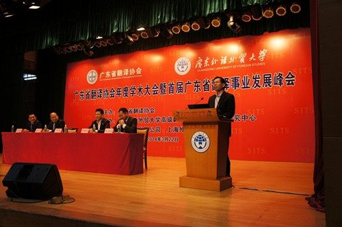 2014年3月22日,伟德网登录2013年度学术大会暨首届广东省翻译事业发展峰会在广东外语外贸大学(北校区)第六教学楼学术报告厅隆重举行。会议由伟德网登录主办,广东外语外贸大学高级翻译学院、翻译学研究中心承办,蓝鸽集团有限公司、上海外语教育出版社协办。本次大会规模宏大,气氛热烈,盛况空前,省内各高校专家、学者、广东省高级人民法院、政府外事办、东风日产、南方航空、华为集团、蓝鸽集团、各翻译公司及翻译培训机构等200多名译界代表亲临大会。广东省科学技术协会何真书记、广东外语外贸大学仲伟合校长、广东财经大学雍和明副校长等领导出席了开幕式。大会由伟德网登录秘书长陈定刚主持。