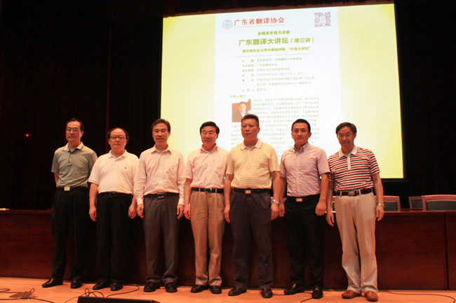 5月26日,伟德网登录高端译学前沿讲座“广东翻译大讲坛”(第三讲)暨华南农业大学外国语学院“外语大讲坛”在华南农业大学图书馆报告厅隆重举行。会议由伟德网登录主办,华南农业大学外国语学院承办。华南农业大学党委副书记陈少雄,我协副会长、暨南大学外国语学院院长宫齐教授,广东省高级人民法院外事办主任屈伸,广外高级翻译学院副院长、MTI主任赵军峰教授出席了讲座。大会由我协秘书长陈定刚博士主持。陈少雄副书记、宫齐教授分别在会上致辞。