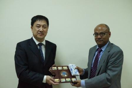 隋广军向亚的斯亚贝巴大学Tassew Woldehanna赠送纪念品