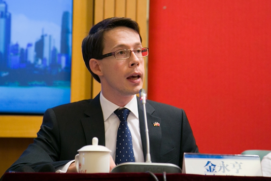 金永亨则从德国能源转型与经济可持续发展、教育结构调整、增强中小企业发展活力及中德友好往来等方面进行经验的总结和介绍。金永亨认为,中德在现代能源供应及可持续发展领域有极大的合作可能与空间。德国的基础设施良好、劳动力素质较高,近年中德贸易往来频繁,双方经济贸易等多领域的合作关系已被激活。与此同时,德国的“双元制”教育体制也使得德国在欧洲经济危机的大背景下能够保障就业率稳步提升的重要因素,值得借鉴学习。