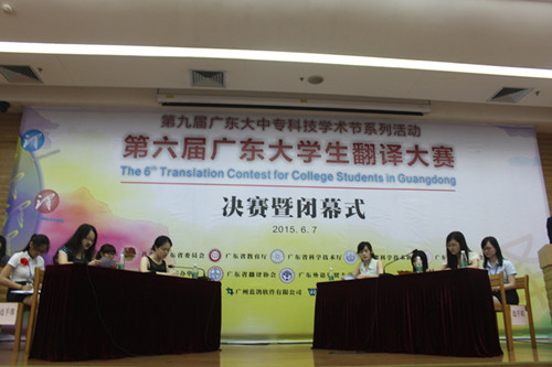 6月7日,第九届广东大中专学生科技学术节之第六届广东大学生翻译大赛决赛在广外白云校区举行。决赛以英语、日语为比赛语种,口译和笔译两种形式,并分为本科院校和高职高专两组进行角逐。广外3学子将本科英语口译组、本科英语笔译组和本科日语口译组三个一等奖收入囊中。