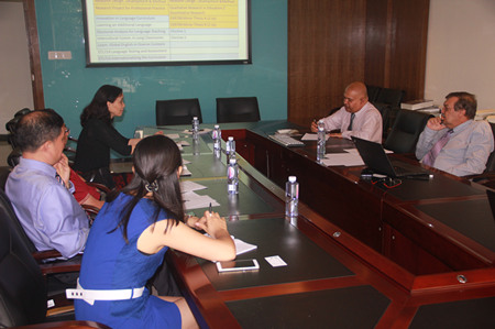 商谈重点主要就研究生合作项目的一些具体细节进行商讨和确认。Indika Liyanage教授对迪肯大学的学年制、学分制、课程设置及学位获得等作了详细介绍;在课程设置方面,建议暨大外国语学院增设教学与教育类课程,因为TESOL硕士项目专注教学与教育特色。暨大外国语学院代表就课程设置、学分转换、学生交换数量等问题表达了中肯意见,并提出了适合暨大学生就读TESOL项目的可行性方案。