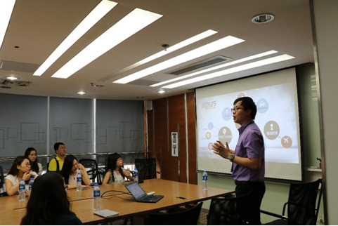 简单的参观与介绍之后,仪式正式开始。首先,新东方广州学校人力资源部邓德铭经理向大家全面的介绍了新东方广州学校的概况、企业文化、薪酬福利、员工晋升平台等。