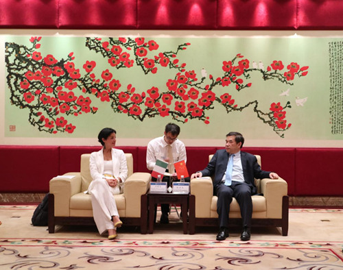 国际合作与交流处、西方语言文化学院等相关单位负责人参加会谈。会谈结束后,白露茜总领事一行与西方语言文化学院师生一同出席意大利语言周开幕式。