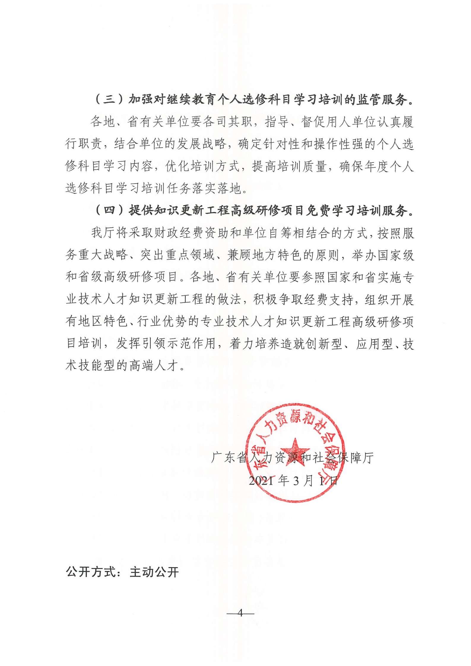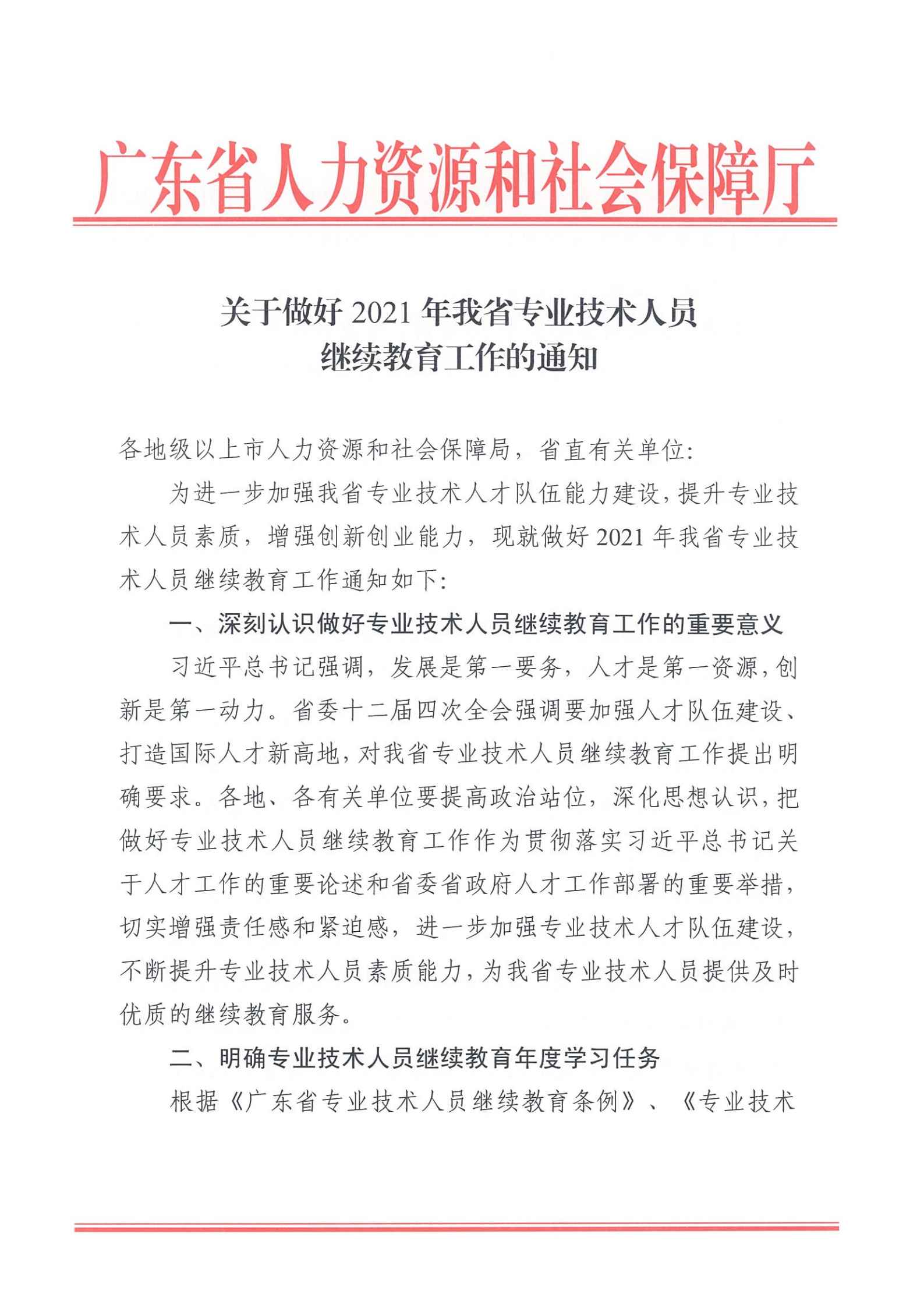 广东省人力资源和社会保障厅《关于做好2021年我省专业技术人员继续教育工作的通知》