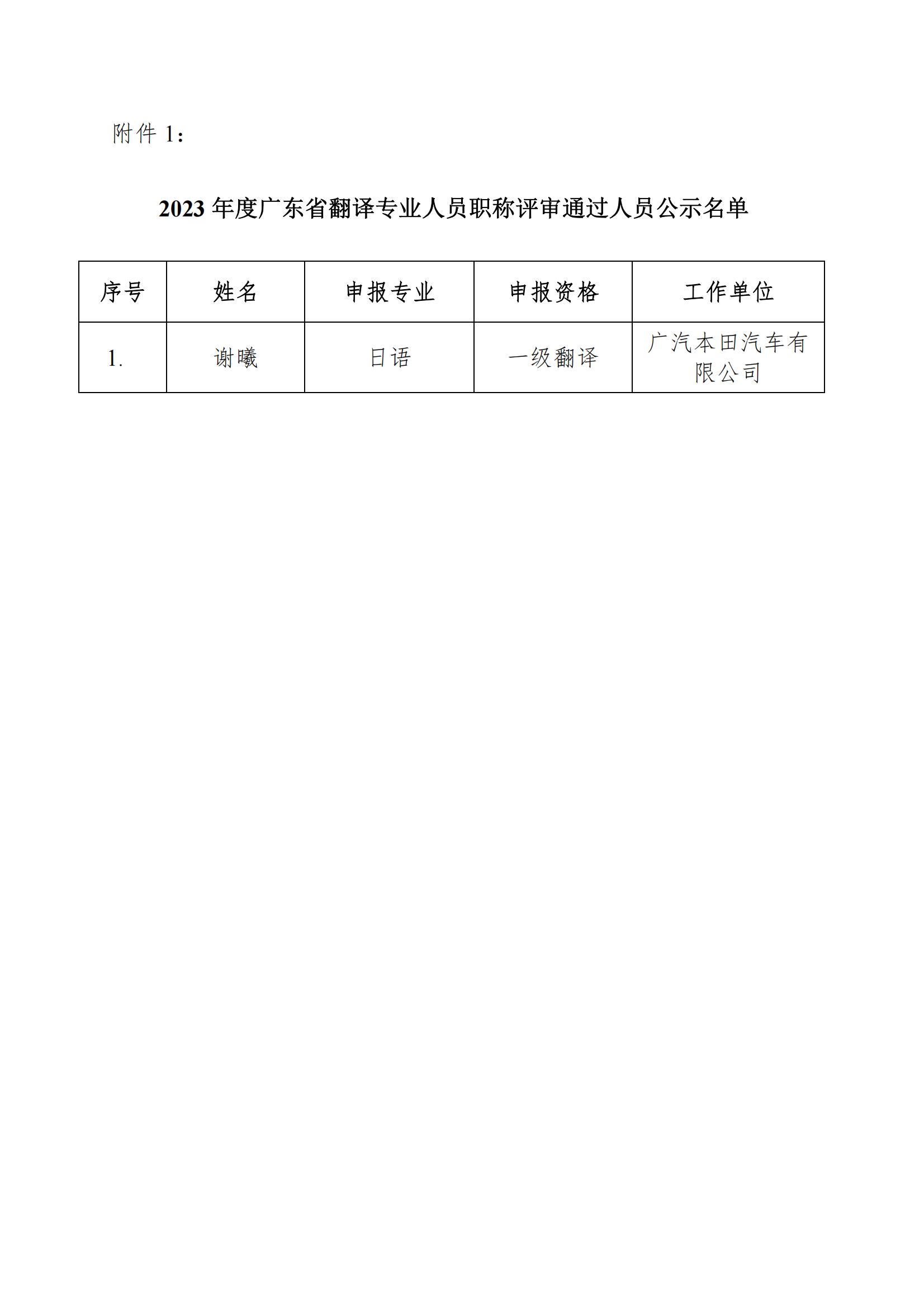 关于2023年度广东省翻译专业人员职称评审通过人员名单的公示